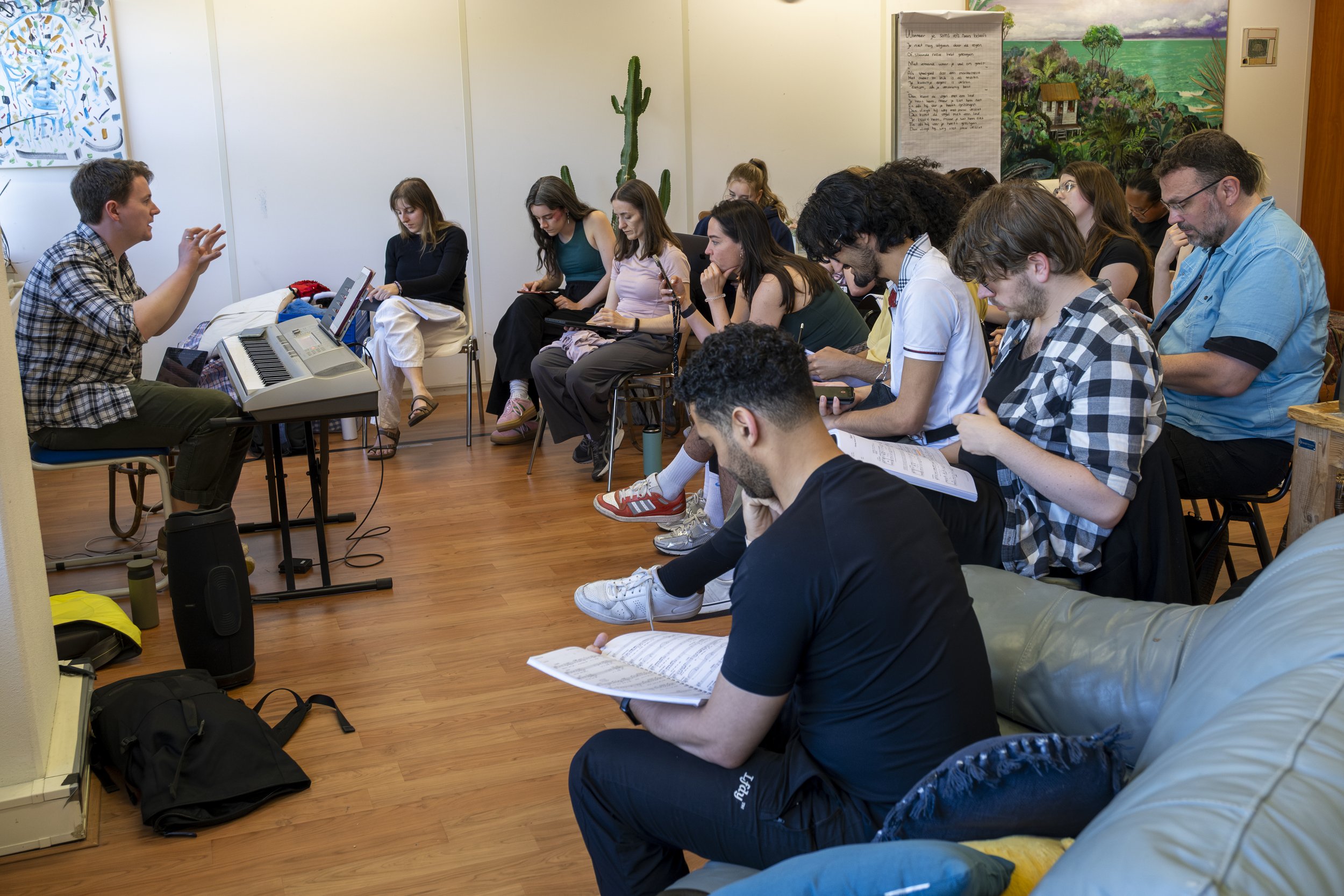 Laying the musical foundation: Leads Vera Sophie Huibregtse and M Monteiro work through solos and duets with vocal director Roel Bakkum. These early sessions ensure every note is perfected before the added complexity of staging and choreography begins.