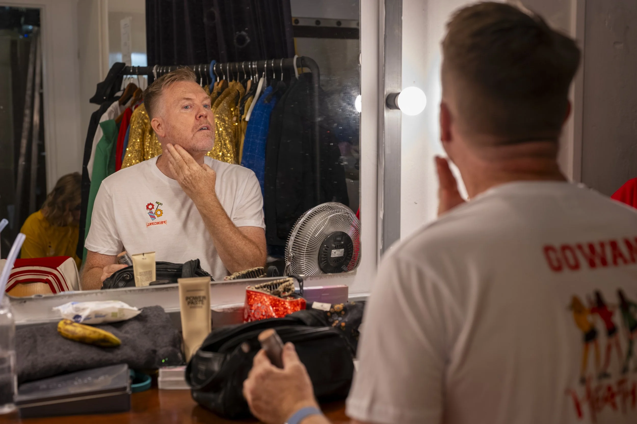 Pictured: Sean Olson Roy (who played Principal Gowan / Jock Dad) getting ready backstage