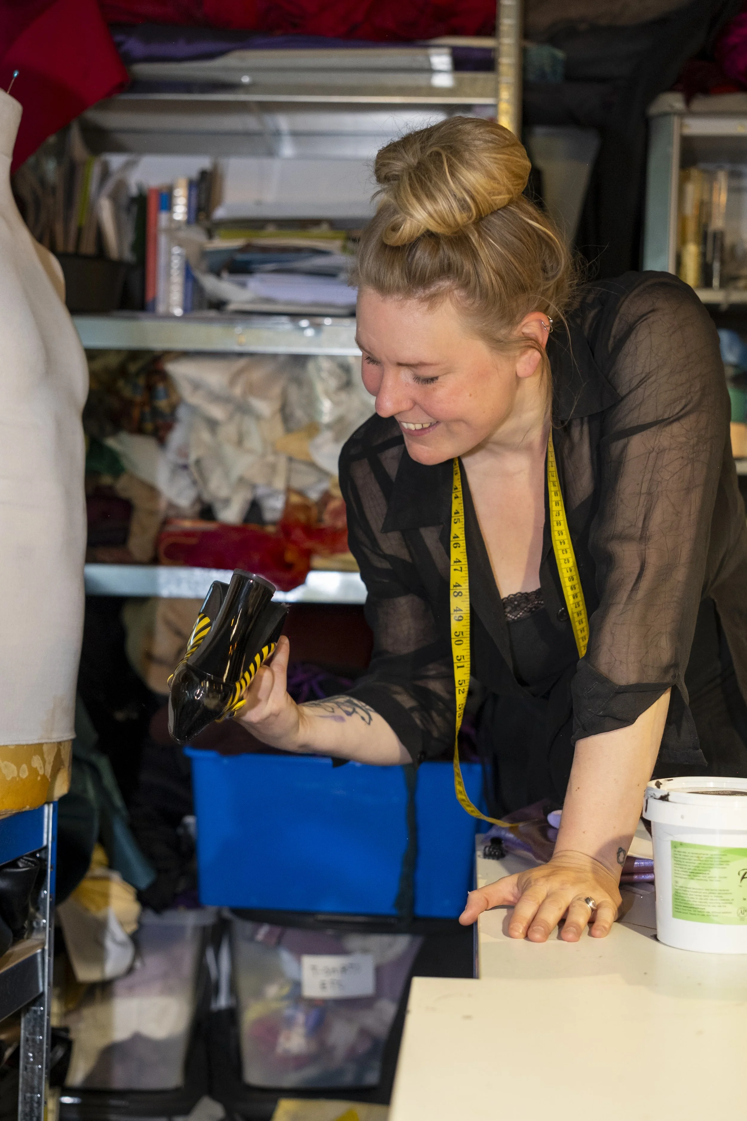 Pictured: Sandrine Ott working on the fake bomb prop for the end of the show