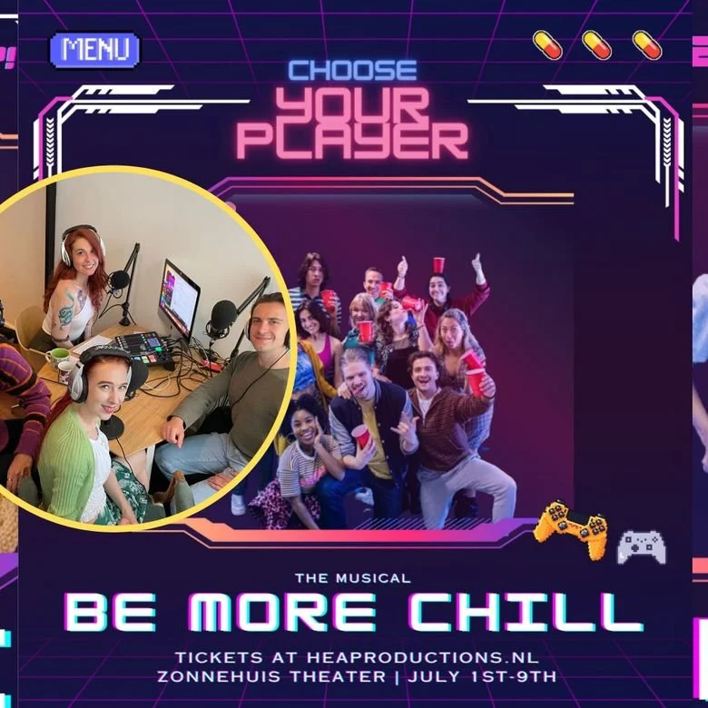 Guests: Ties Jansen, Seraphim Gumede, and Brittany Sanders, who are part of Happily Ever After Productions’ upcoming musical, Be More Chill, on stage the beautiful Zonnehuis in Amsterdam Noord from 1-9 July.